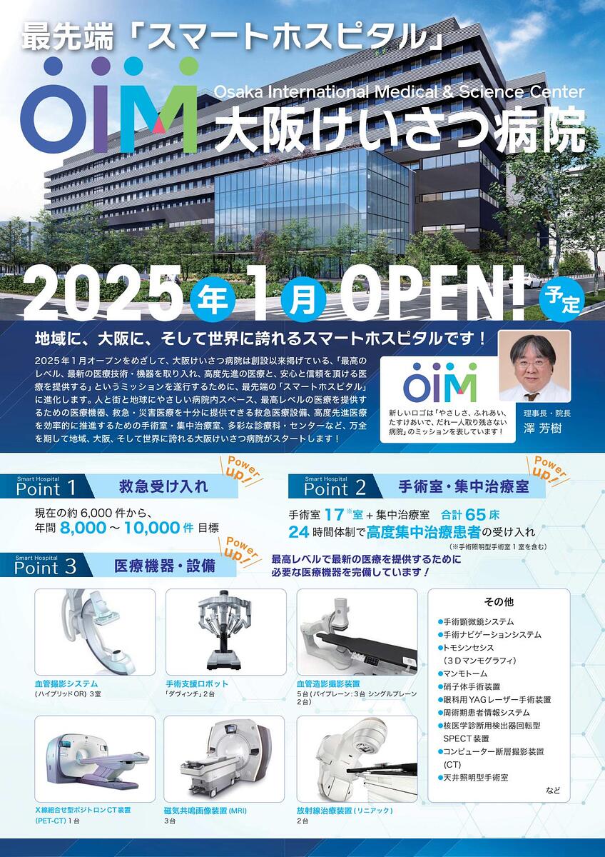 大阪警察病院は地域から厚い信頼を得ているだけでなく、全国や世界に向けての発信力も素晴らしい病院です。今のままでも充分な価値を創造するブランド病院なのですが、なんと来春には新築移転し、ハードも更にパワーアップするようです。